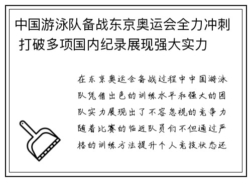 中国游泳队刷新世界纪录 展现强大实力备战巴黎奥运